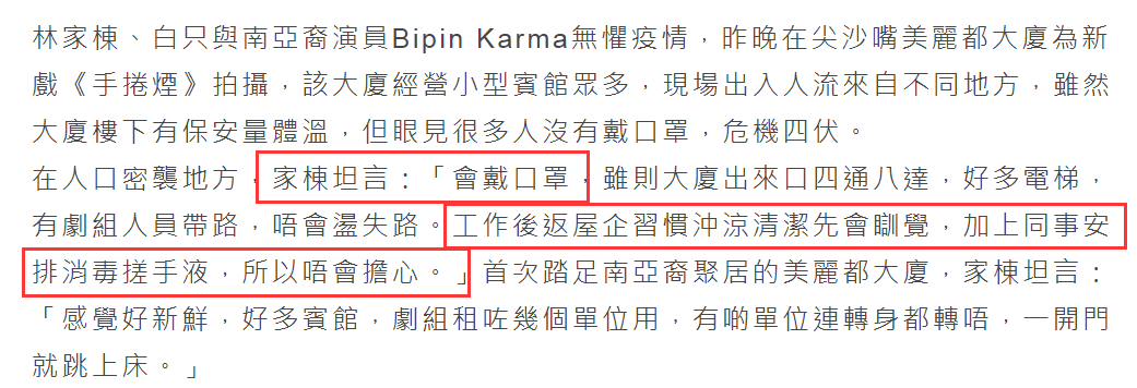 与此同时,林家栋受访时也表示自己其实会戴口罩,在拍摄结束之后,回家一定会先清洗自己在睡觉,同时剧组这边也有准备例如消毒液等防疫措施,所以还是不用太担心的。