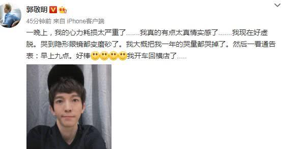 之后,郭敬明在社交媒体爆料,最近自己哭的非常厉害,感觉都哭到虚脱,