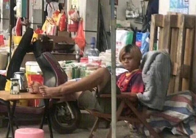 这位广西小贩穿着随意,一头黄色头发,皮肤黑黑的,皱起眉毛的样子写满了不爽,这难道真的不是罗志祥本人吗?今年罗志祥生日的时候,潘玮柏还特地发了这张小贩的照片祝福他。