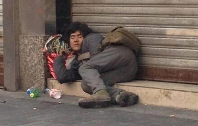 不过好笑的是一位乞丐和他撞了脸,这位乞丐虽然穿得破破烂烂的,倒在路边上睡得十分安稳,从他的五官来看,确实和彭于晏谜之相似,估计好好收拾一下,绝对是帅哥一枚的吧。