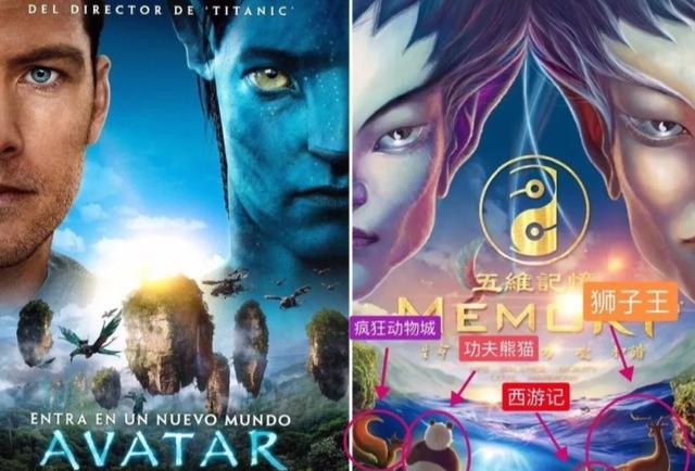 这波操作不光没有引来大家的同情,反而遭到了群嘲,网友们纷纷开始找出证据怒怼,称五维记忆的海报和阿凡达谜之相似,确实封面上都是两半张人脸,而且海报的下半部分也都差不多。