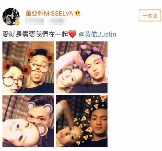 黄皓应该是萧亚轩的第10个男友,Elva不愧是被称为“男神收割机”的人。