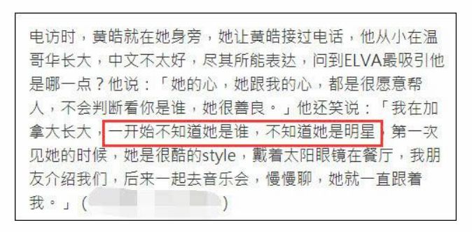 不仅在采访中提到两人的恋情,因为两人的恋情备受网友关注,她还在网上表示男朋友黄皓是陪她走过低谷的人,所以两人的感情很深。喜欢Elva的人应该都知道,她在官宣恋情之前,已经消失了快两年,这并不是因为她想淡圈,而是因为身体原因。