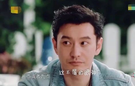 黄晓明不仅和自己同类型的男明星暗戳戳进行比较,当和自己有很大差距的男明星发生交集的时候,他的表现也相当耐人寻味,比如第一期王俊凯提出海鲜购买时间是9点以前的时候,他的表情。