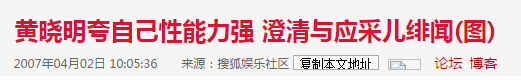 台湾记者有人问:“晓明,你有胸毛吗?”黄晓明愣了愣回答:“有啊!”记者就告诉他,有胸毛的一般性能力都很强。第二天,各大媒体的内容就成了黄晓明夸自己很棒。