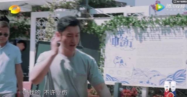 到地方进门,黄晓明连搬行李这种小事都要抓在手里,“听我的,不许受伤,别一个人拿行李”。