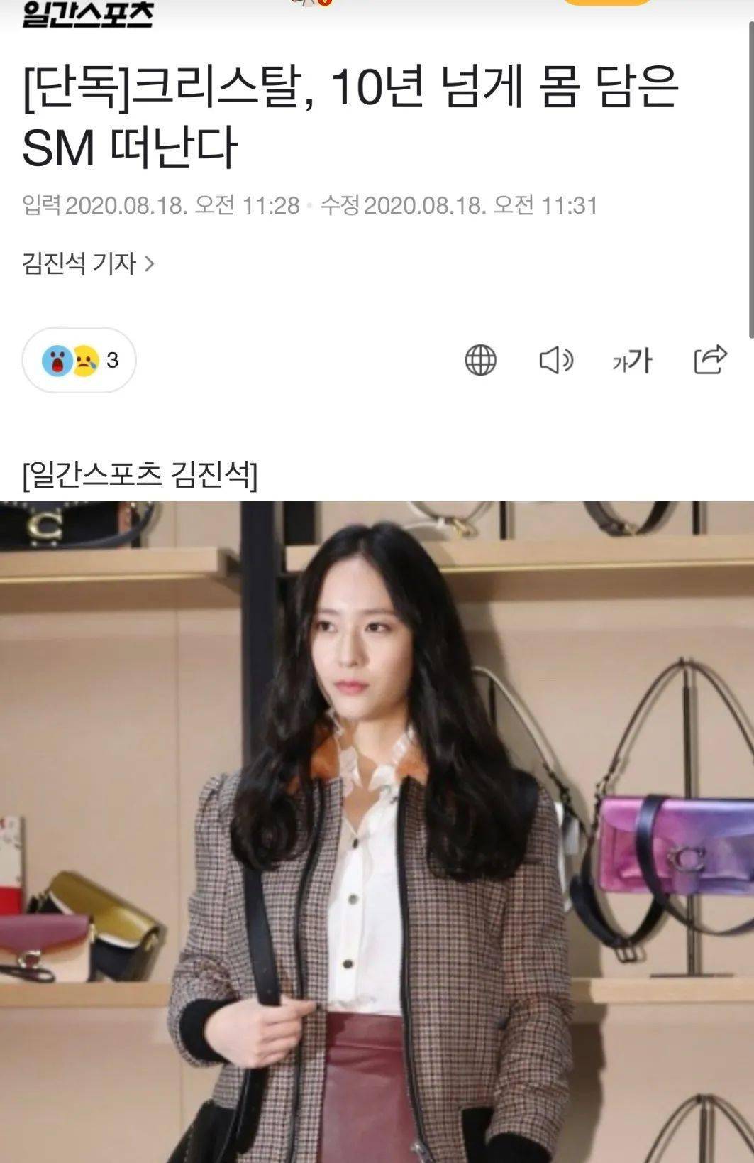 这这这新闻标题有问题吧,明明是合约到期后不续约啊,怎么就成了郑秀晶解约了……