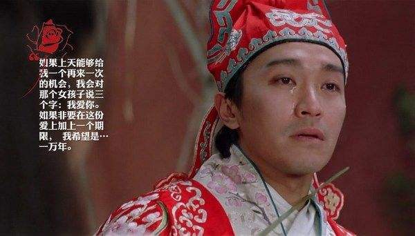至尊宝在说这句话时,脖子上架着一把刀,这个台词原本也只是无厘头风格的周氏幽默,谁曾想却一语成谶预示了他和紫霞的结局,也是戏外周星驰与朱茵的最后结果。