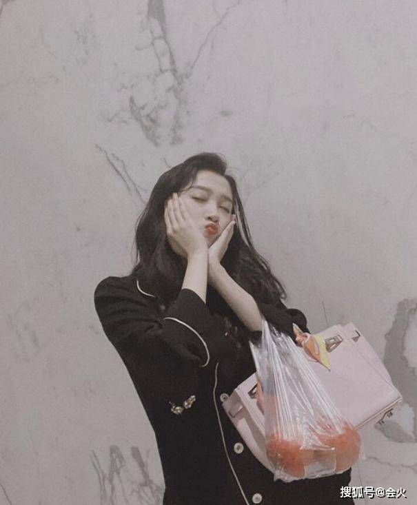 关晓彤拎着这只名牌包,却还拿一个装着水果的塑料袋,走了非常俏皮的混搭风。