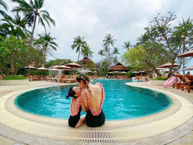 白冰也曾在微博晒出女儿的照片,母女俩身穿同款花边泳衣,坐在泳池边拍照,一一抬起头亲吻白冰,脸上带着笑意。