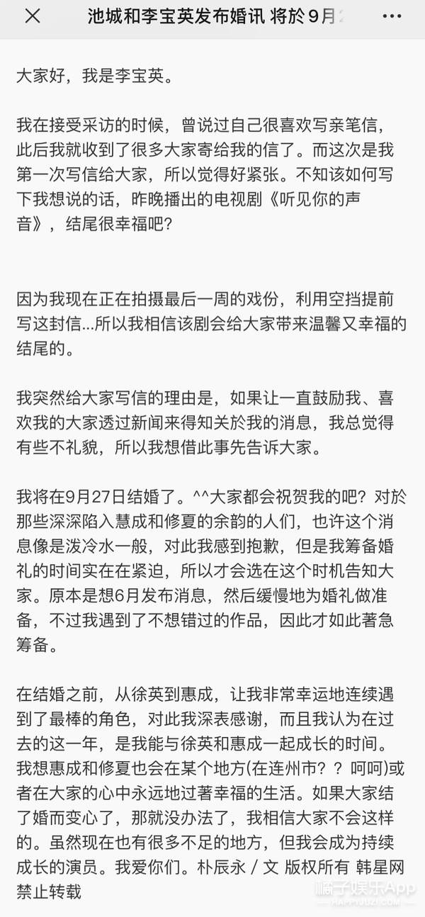 前面那位李宝英姐姐,在剧播的完第二天宣布婚讯。