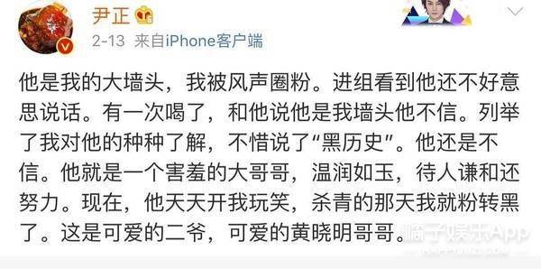 才会在尹正发文表白黄晓明时,第一反应是油腻炒作↓