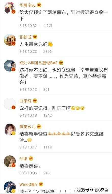 许多娱乐圈里的好友都给宁桓宇送上了祝福,像同样是快男出身的华晨宇,还有张新成、白举纲、孙坚等等,这好友圈子估计宁桓宇妻子还挺放心的,没什么异性全是又帅又有型的圈内男神,就看这圈子也知道宁桓宇也是个不错的男人了。