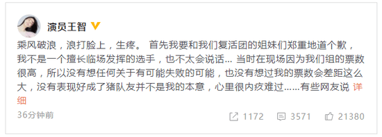 网友们看到后也纷纷为王智加油打气:“没事了姐姐,你真的很棒了,做自己想做的事,加油!”“姐姐超级棒!要继续闪闪发光哦!”