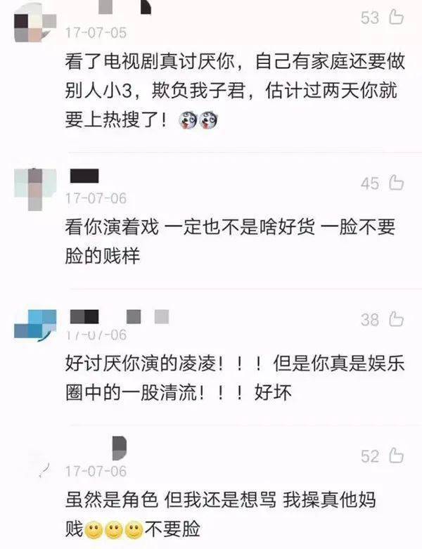 其实,这样的双标现场并非是第一次。前两年的爆剧《我的前半生》相信大家还有印象。剧中的小三凌玲因凭借各种手段成功上位,赶走原配,恶心到了大批观众。而对小三的厌恶,也延伸到了戏外,导致饰演角色的吴越被咒骂得厉害,无奈之下关闭了微博评论。