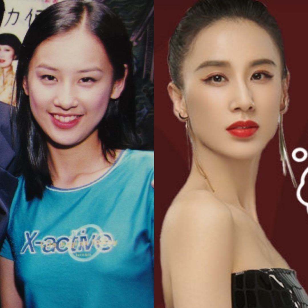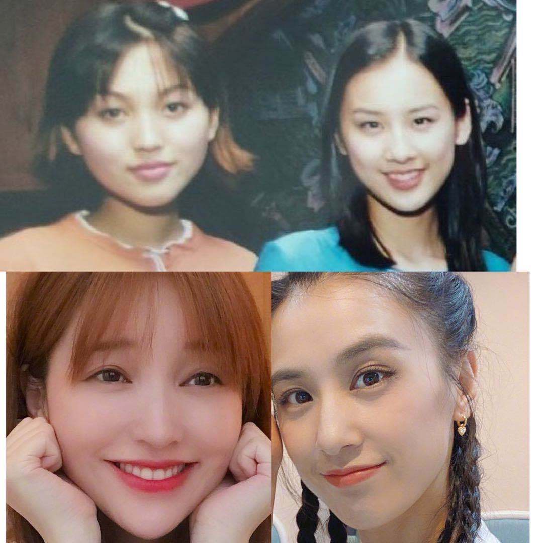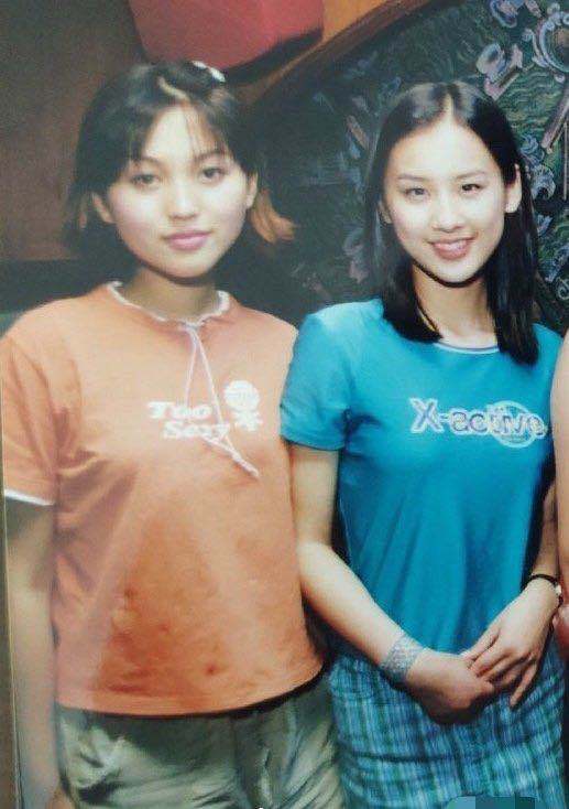 金莎看起来要比黄圣依丰腴些,而黄圣依显得很小,其实两人相差一岁。这个时候绝对没有整容,想想20年前是2000年,那个时候应该还没有很普及的整容医院出现吧?金莎有点撞脸演员张庭,而黄圣依看起来还是单眼皮,但很自信。