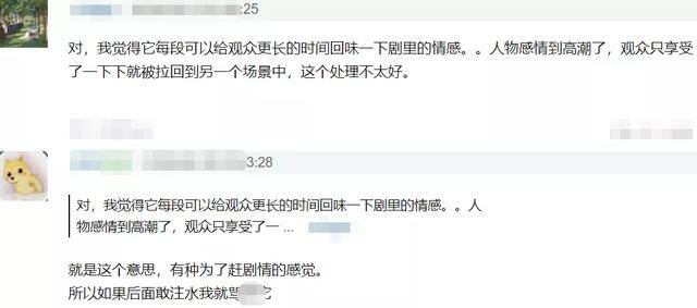 这样频繁地切换场景,其实有赶剧情的嫌弃,剧中人物感情到了高潮,可剧外人还没跟上,很多观众也感受到了,开始担心后续剧情注水。