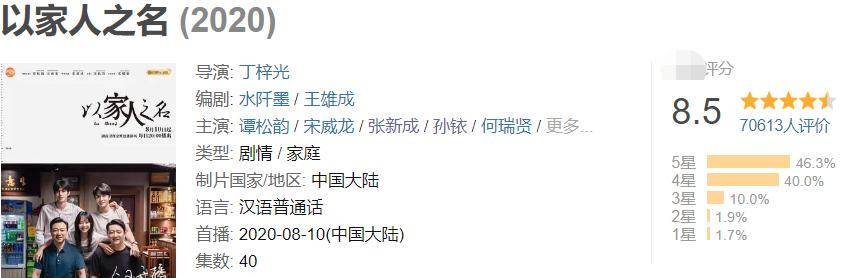 播出不过一周时间,《以家人之名》就已经成了近期最热门的剧集之一,平台专组人数破3万,打分人数破7万,收视率和评分都已经稳定,但现如今就没有一切都尽善尽美的剧集,就算《家人》数据很漂亮,但缺点也是很明显。