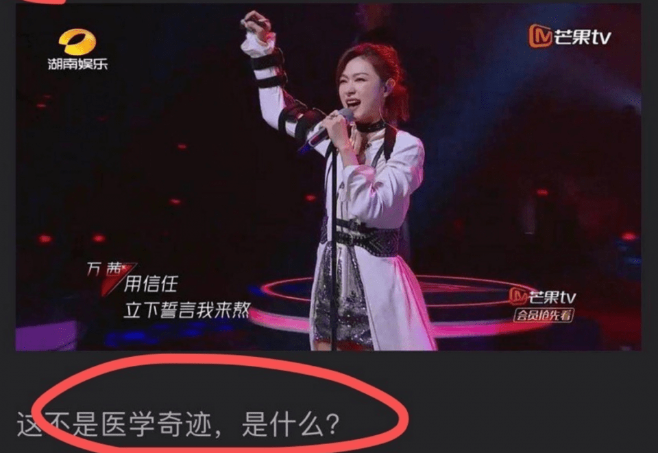 可是你们看看万茜老师在第五次公演的现场,唱《缘分一道桥》的时候,万茜居然抬起了手臂。有些网友觉得这不可思议,还调侃这是医学奇迹。其实,他们无非想说,万茜老师根本就是在卖惨。