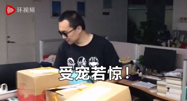 但他昨晚就来到办公室拆包裹了。