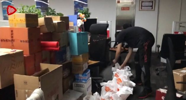 付国豪把网友寄来的零食分成了几十份,分给同事当礼物。