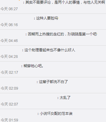 由于该嘉宾曾经给孙骁骁做过助理,因此不少网友都猜测这个艺人就是孙骁骁。虽然孙骁骁方面称从没有要求任何助理做过这些事情,但依然遭到了大家的质疑。