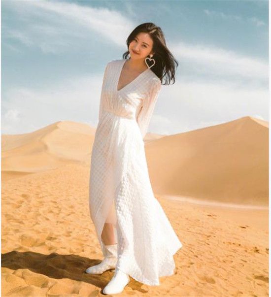 虽然只是为某品牌站一下台,但是当天的赵丽颖显然也明白这次亮相的重要性。只见她一身白色裹身礼服,依然是三七开侧分发型。精致的妆容和娇小的身材都跟产前没什么两样。虽然生图被吐槽粉底扑得太厚,不过整体效果还是非常养眼的。
