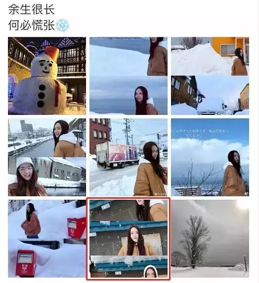 而后,她在2018年过年前后发的一条微博,写道:余生很长,何必慌张。同样是九宫格,同样是一张图片。