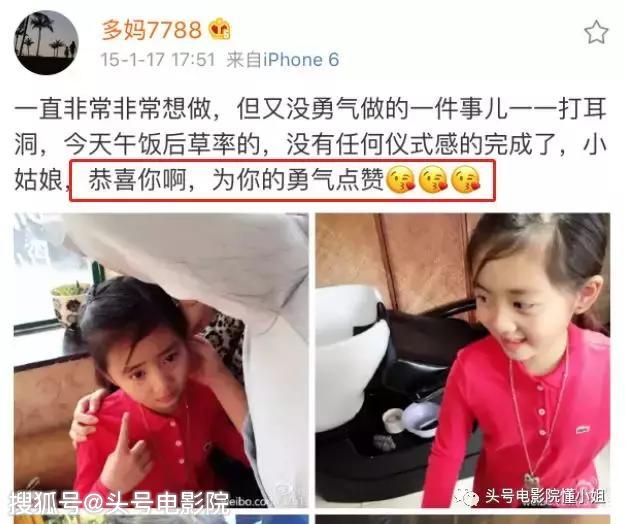 不管是不是大众眼光中孩子们应该做的,还是不应该做的,在他们家庭中似乎稀松平常,甚至还会鼓励孩子:比如,大女儿多多小小年纪就打了耳洞,孙莉还为女儿的勇气点赞。