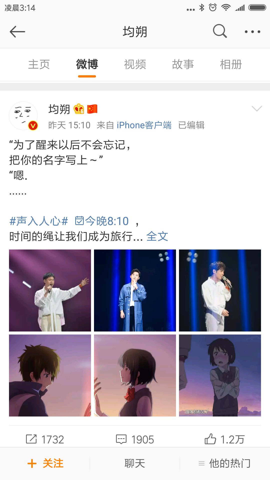 在演唱《你的名字》前,徐均朔、郑棋元、胡超政还专门买了《你的名字》里的周边红绳系在手上,三个大男人一起去买动漫里的红绳,想想也是够可爱的~