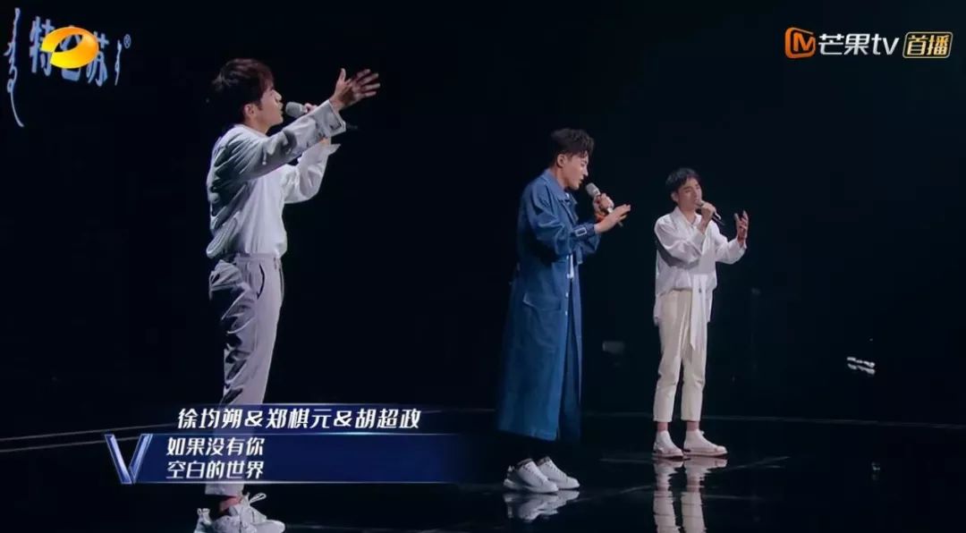 到了第三期,徐均朔和郑棋元的绝美二重唱震撼来袭,全场气势十足,眼神乱飞,让观众看到他们的另一面:摇滚、不羁、高贵。