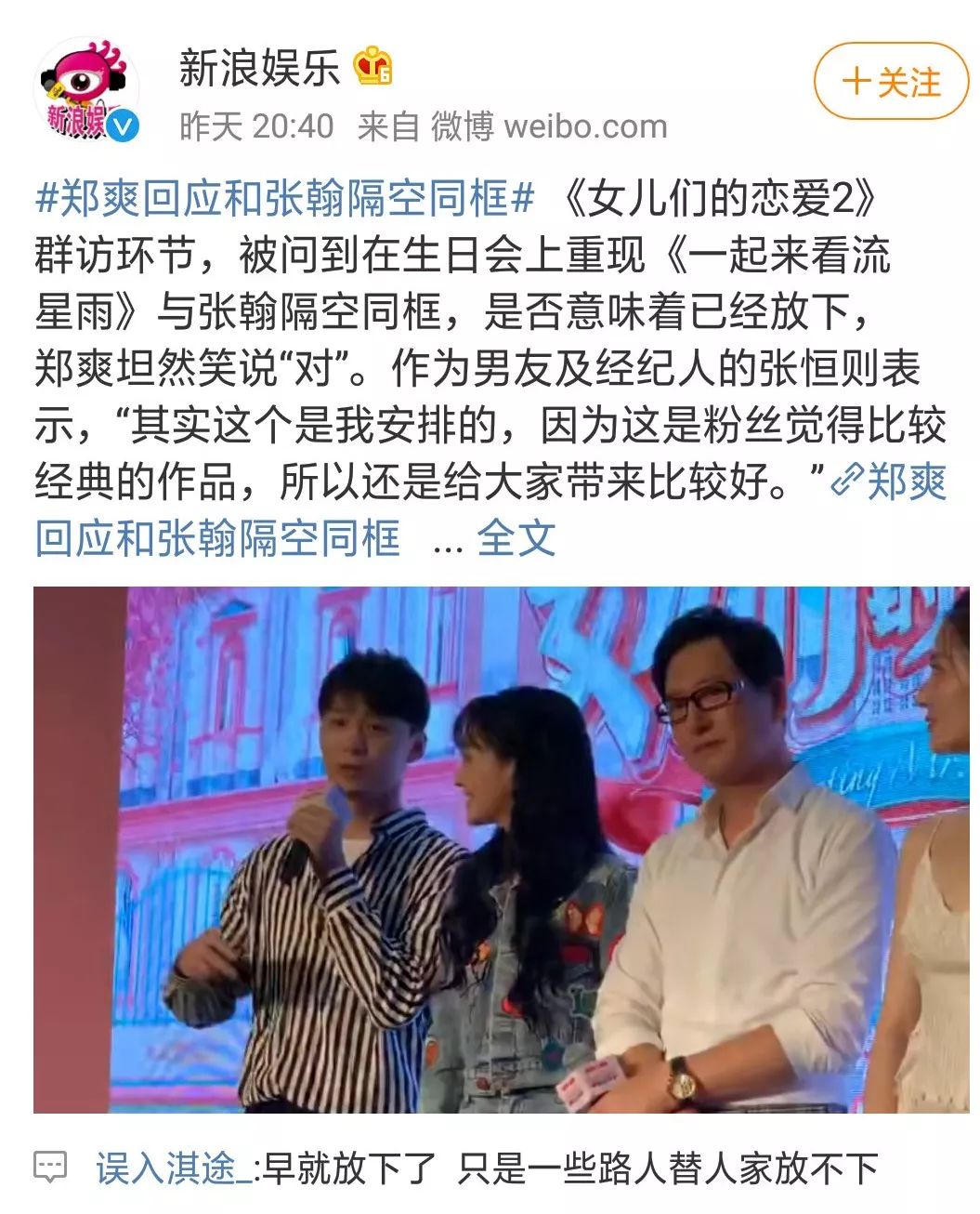 在晚会上郑爽再一次穿上校服,隔空喊话张翰,引起一大波回忆杀。梳歪的马尾,愤怒的表情还是楚雨荨的摸样,郑爽与张翰分手以后还是第一次在正式场合和张翰“同框”,郑爽大胆与张翰隔空呛词把粉丝一众引回了那个夏天。但小爽的台词还是得加个油,不过这样也挺楚雨荨啦!这一次的隔空“同框”其实挺令人惊讶的,毕竟小爽与张翰的感情摆在那里,作为本次生日会的策划者郑爽的现男友表示毕竟是一个经典,这也是小爽的起始点,挺有意义的,人家自己家男友都不见意咱们吃瓜的也别太积极啦!大家都已经忘掉的事情,只有部分吃瓜群众在带节奏。