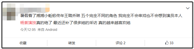 两部电影上映期间,热度居高不下,重点是她的作品,让大众更加确信了一件事:杨紫演啥像啥。这对一个演员来说是最大的嘉奖和认可了。