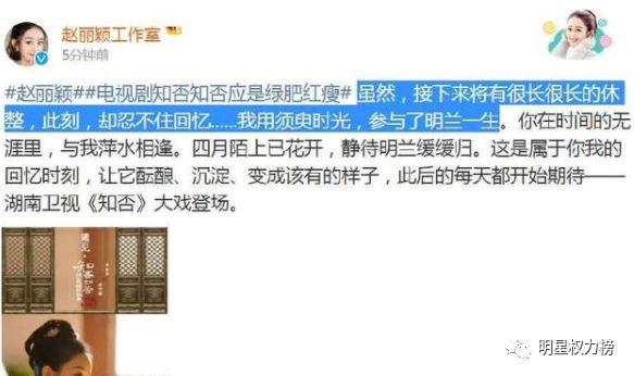 去年四月份,赵丽颖拍完《知否知否应是绿肥红瘦》之后发微博说想缓一缓。