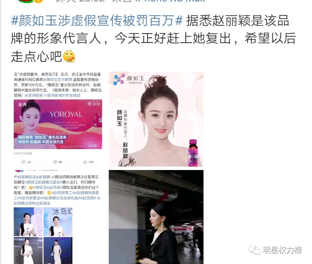 此外刚复工的赵丽颖还遭遇了代言颜如玉品牌涉嫌虚假宣传这事儿。